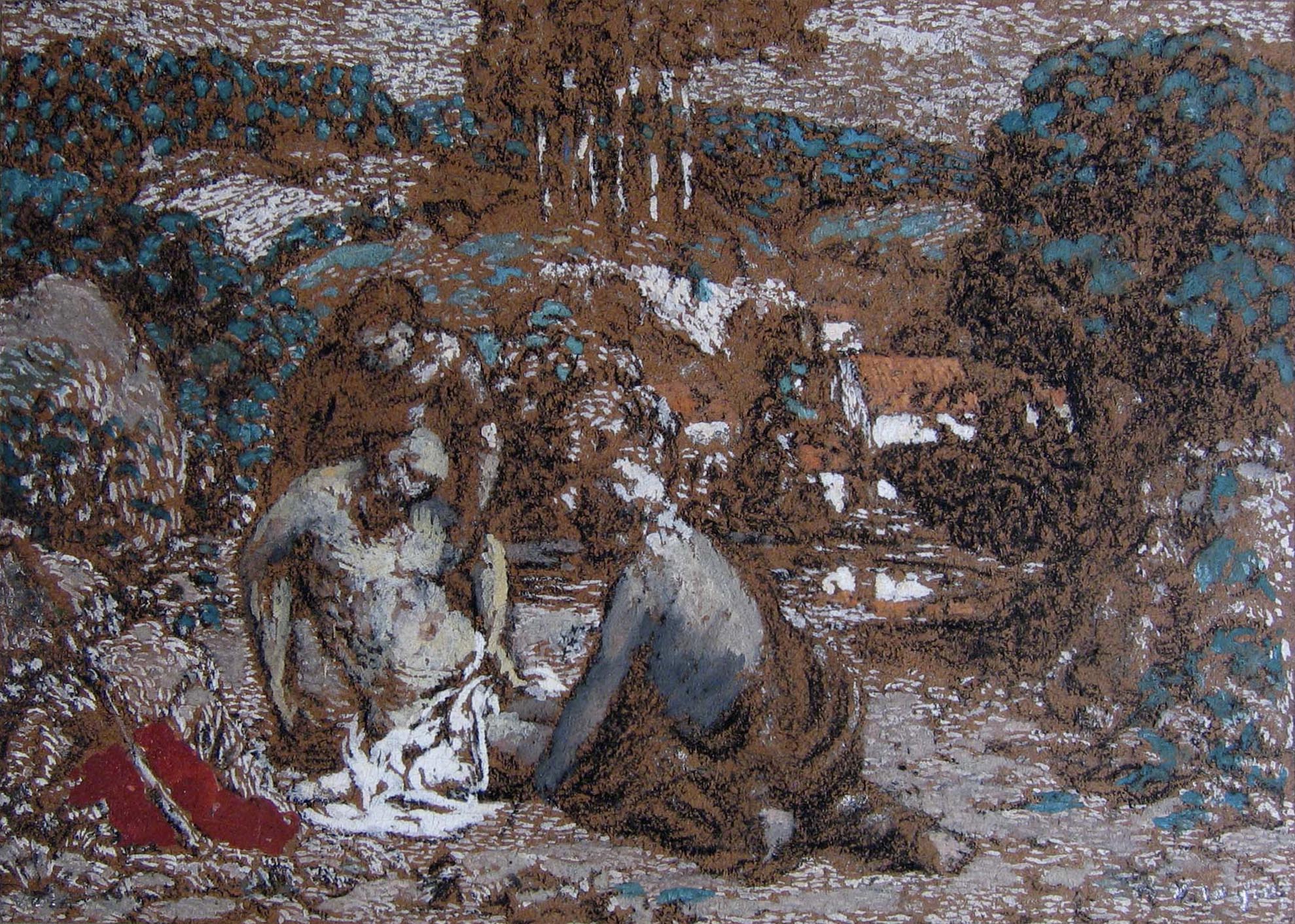 Pierre noire et gouache